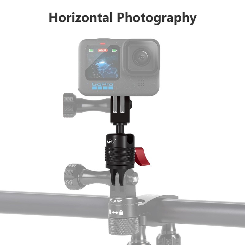 - 360-Degree Horizontal Rotation: The aluminum alloy adapter is equipped with a 360-degree horizontal rotation feature, allowing users to rotate their action cameras horizontally to capture panoramic footage from different angles. This enables users to achieve versatile shooting perspectives and explore creative possibilities.