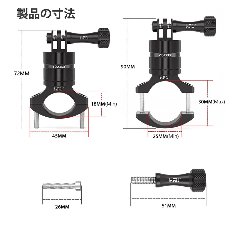 HSU Aluminum Steering Wheel Mount Gopro Mount Bike Mount for 18mm-30mm Handlebar Mount 360 Degree Rotating Bike Rack Mount Gopro Bicycle Mount for GoPro Hero 12/11/10/9/8/7/6/5/4 AKASO Campark and