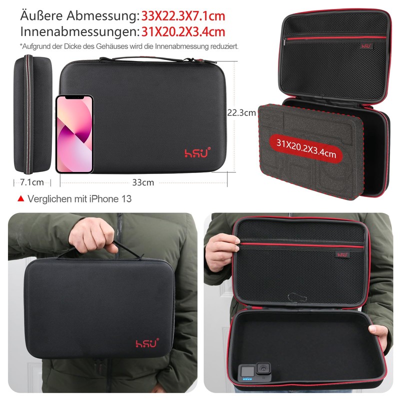 HSU Bag for GoPro, Carry Bag Compatible with Hero 12/11/10/9/8/7, Apeman, Crosstour Protective Case for Camera and Accessories (Red, Black)