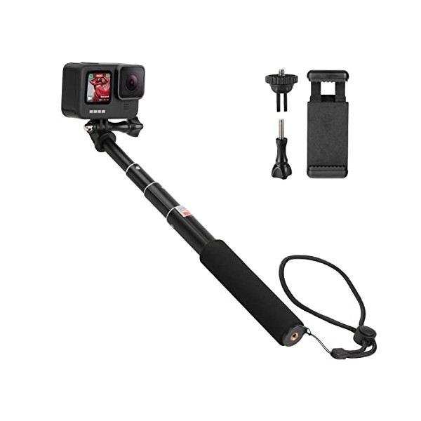 - Ensure your GoPro Safety – This gopro selfie stick has slip resistant rubber and wrist strap around the pole handle to prevent unexpected falling off