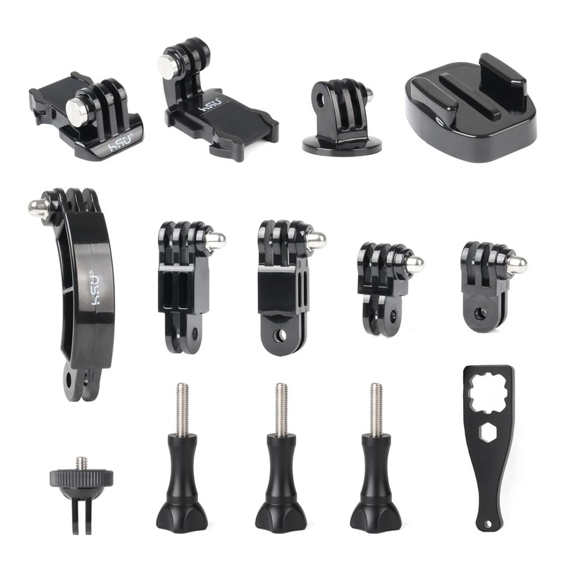 HSU Grab Bag Basic Camera Mount Kit for GoPro, Quick Release Buckle Mount, Extension Arms, Tripod Mount, 1/4 inch Camera Adapter and Thumbscrews(14-IN-1)