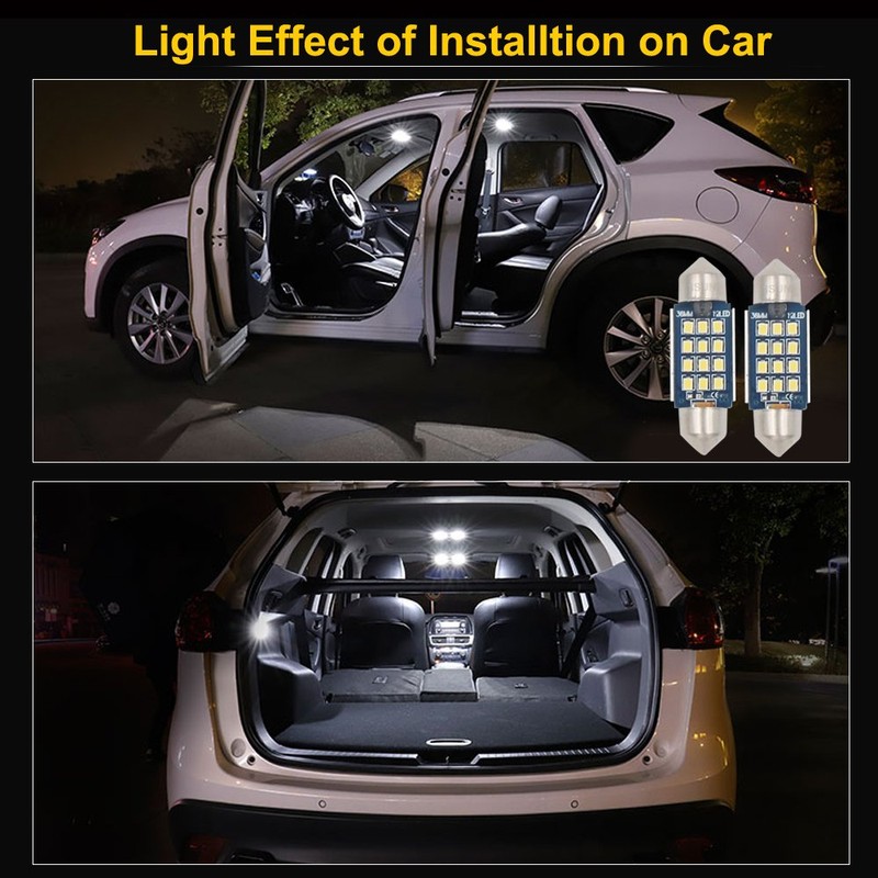 - (Set of 2 36mm festoon led Bulbs) 12LED High power SMD2016 Chip per bulb,Working Voltage:12V-24V (fit 12V-24V vehicles),Size: 1.418(inch) * 0.335(inch)