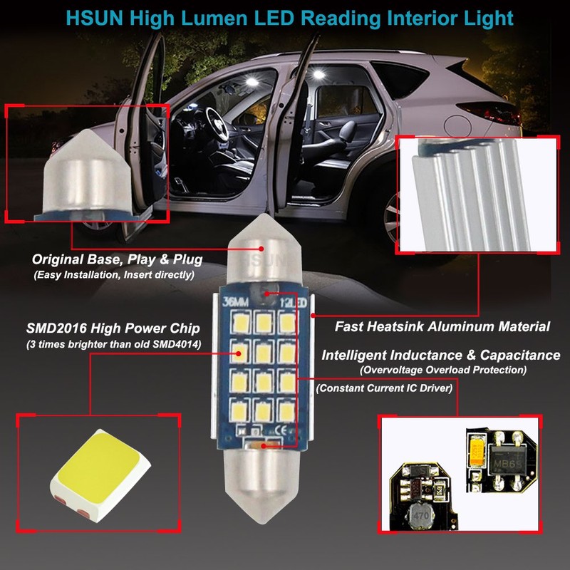 High Lumen: Up to 80LM per Chip,960LM/Each Bulb;1920LM/Pair,Bright for car dome reading light,number plate light and more