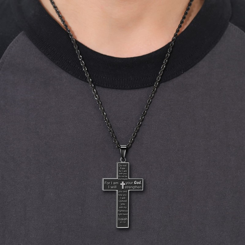 - 🎁 Great Jewelry Gifts:This good quality bible verse cross necklace is perfect gift for giving to son,man,husband,grandson,boyfriend and best friends for Birthdays, Graduation, New Year's Day, Mother's Day, Father's Day, Easter, Halloween, Thanksgiving, Eucharist or Christmas, as well as any other special occasions or celebrations with a nice gift box