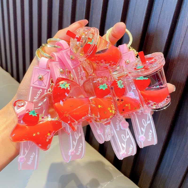 - Interesting Design: The red strawberry theme design makes the keychain very interesting and special. The strawberry is floating on the bubble tea liquid, looks very natural and comfortable, when you look at it, you feel relax. Good choice for daily use or gift for any occasion.