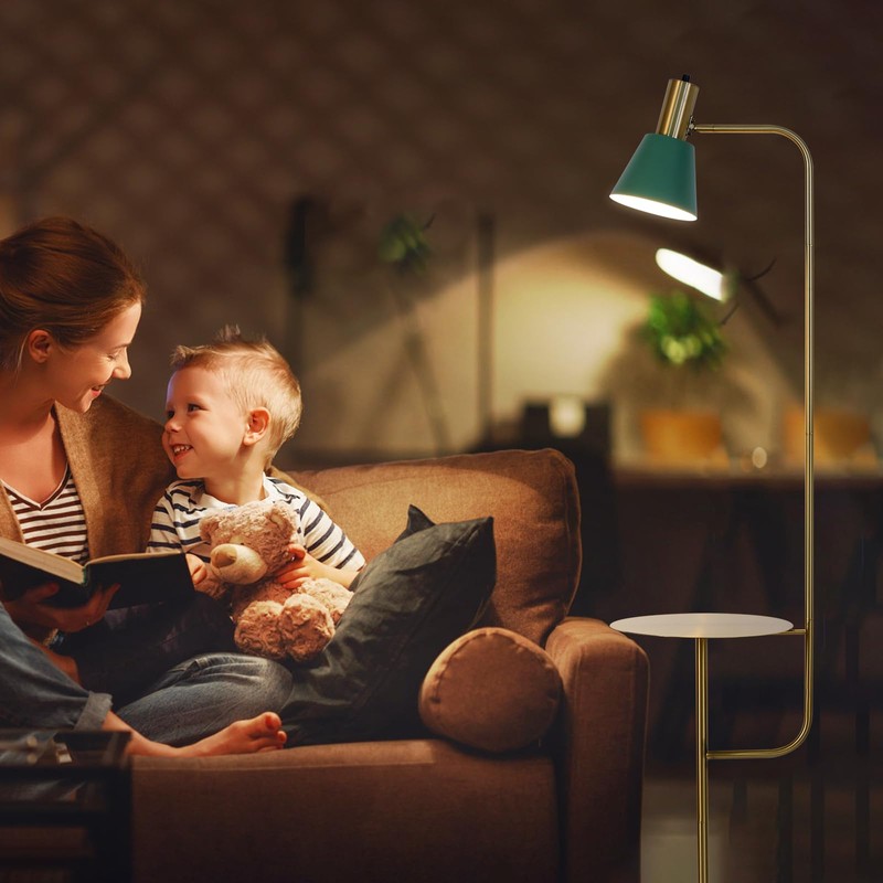 Hsyile Contemporary Modern Creative Floor Lamp with a Table,Suitable for Living Room,Den,Office,Bedroom - Standing Lamp Tall Floor Lamp - Brushed Brass Finish and Green Lampshade