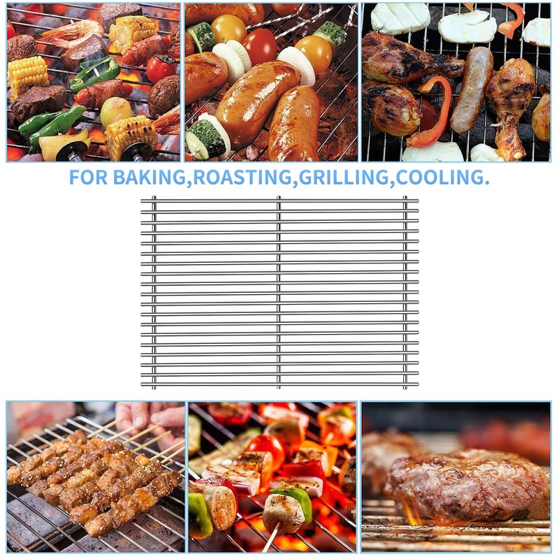 • 【Package】Including 3 pack stainless steel cooking grates,dimension: 18 7/8"" x 13 1/4" Each, 18 7/8" x 39 3/4" Total Total. Please kindly compare with the SIZE and MODEL of your original parts before you order