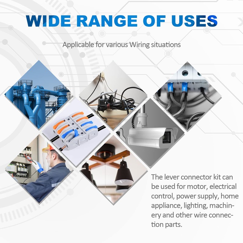 Lever Wire Connectors, HTCELLE 60-Piece Quick Connect Electrical Splicing Kit for Compact Inline Terminals - 28-12 AWG, 1 in 1 out