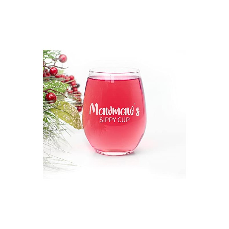 HTDesigns Mawmaw's Sippy Cup Stemless Wine Glass - Mother's Day Gift Mawmaw Wine Gift - First Time Mawmaw New Mawmaw Gift - Mawmaw Wine Glass