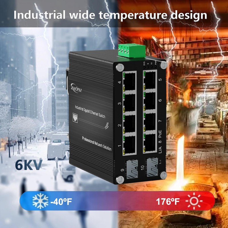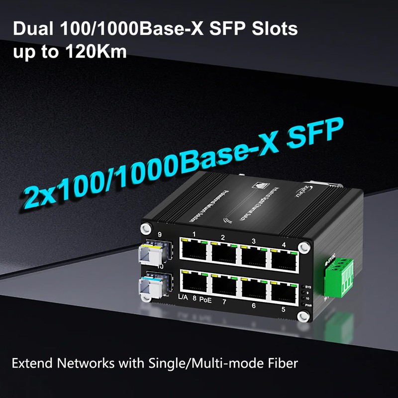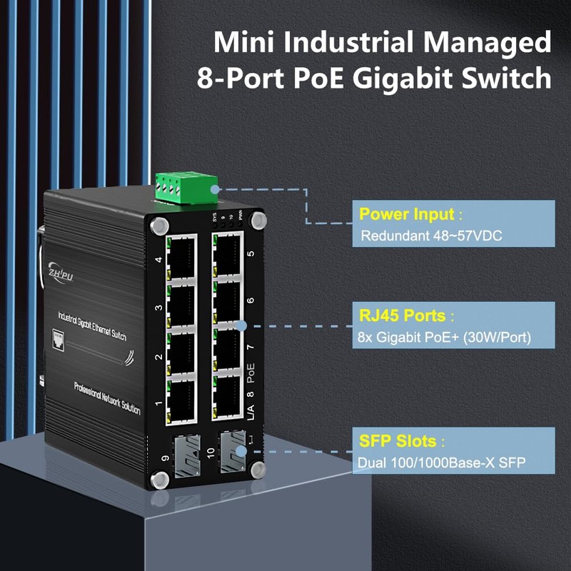 - [Industrial-Grade Managed Switch with PoE+]:8x Gigabit RJ45 ports + 2x SFP slots (100/1000Base-X), IEEE 802.3at/af compliant, delivers up to 30W per port for IP cameras, wireless APs, and PDs.