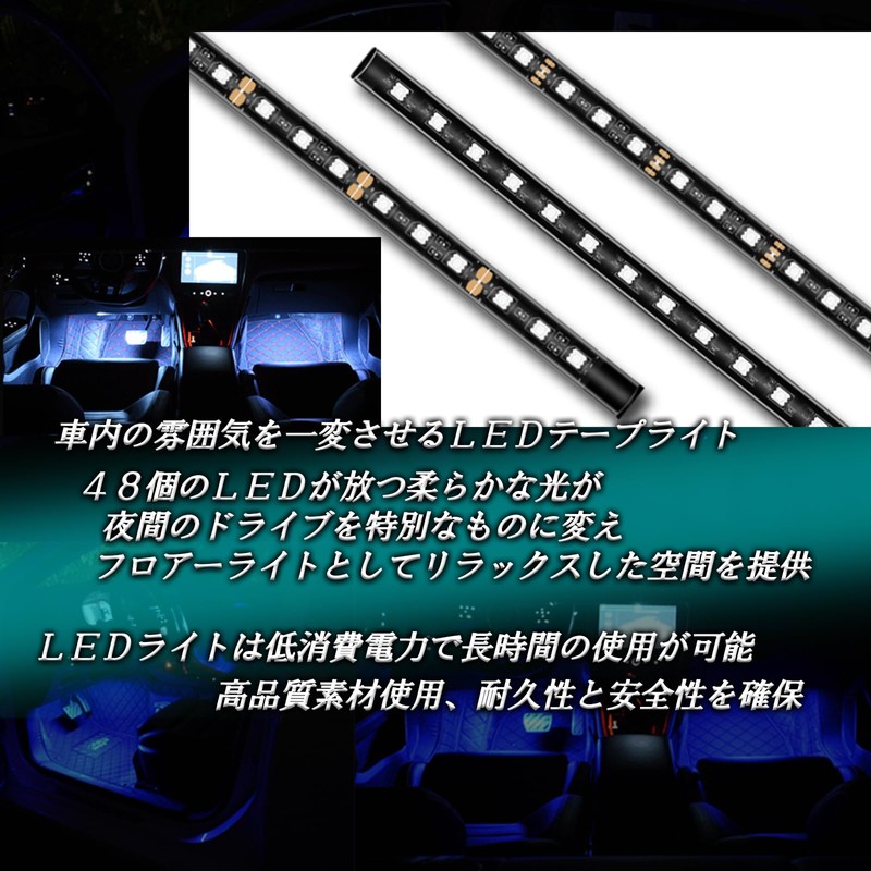 • [Create your mood] This USB and cigarette lighter socket compatible tape light LED illumination will change the atmosphere of your car. The soft light emitted by 48 LEDs, turns your night drive into a special one and a floor light that provides a relaxing space. Enjoy a pleasant ride with your favorite music