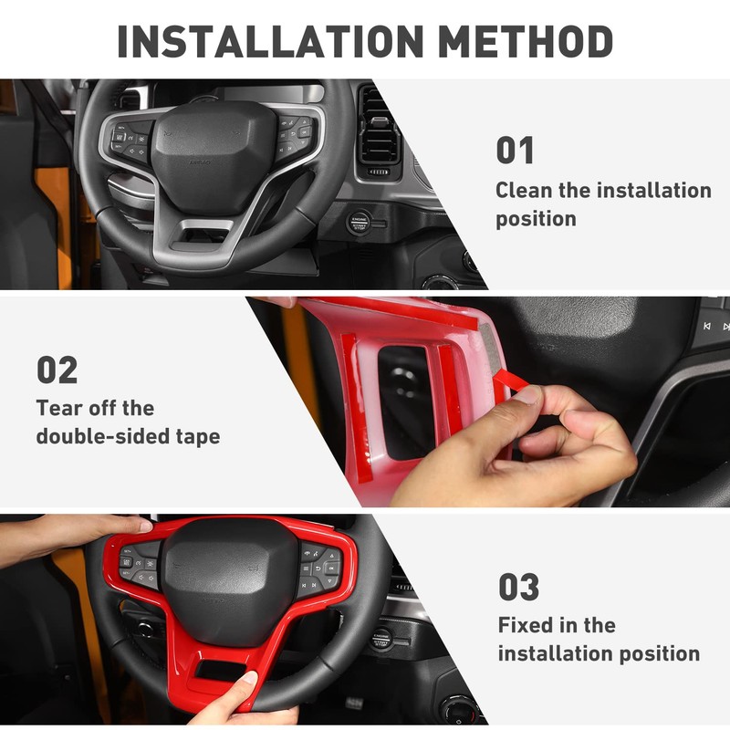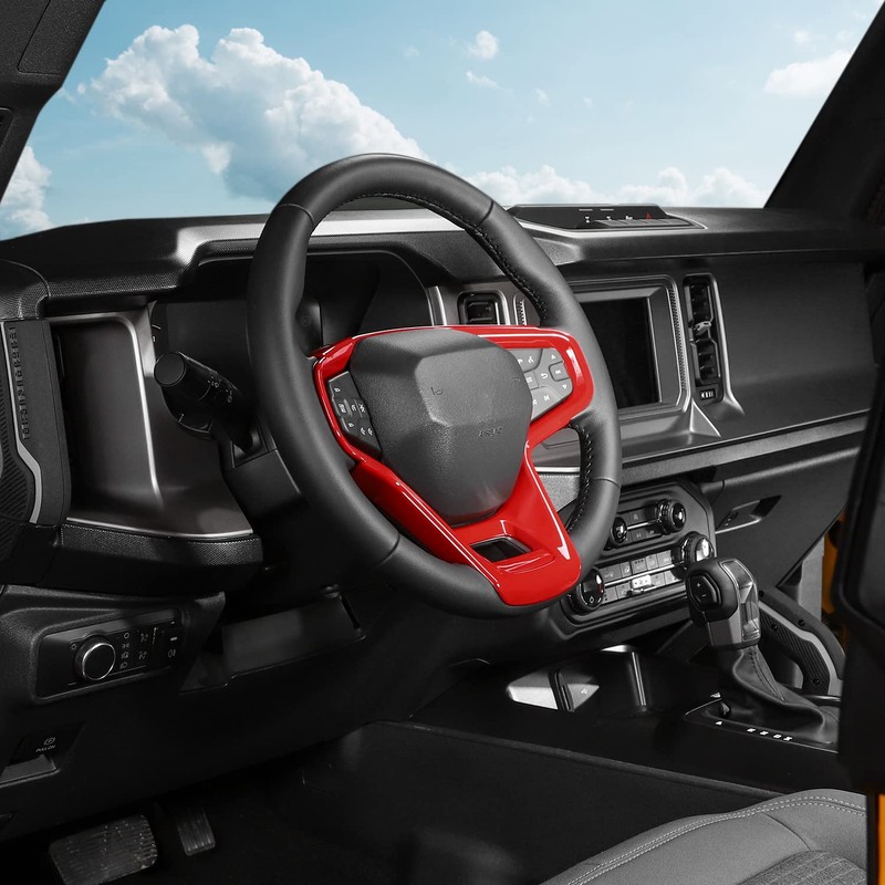 HTHE for Ford Bronco 2021 2022 + Interior Steering Wheel Panel Cover Compatible with Ford Bronco 2021 2022+ (ABS,1PC,Red)