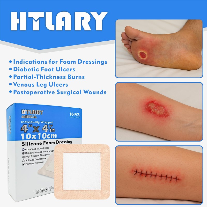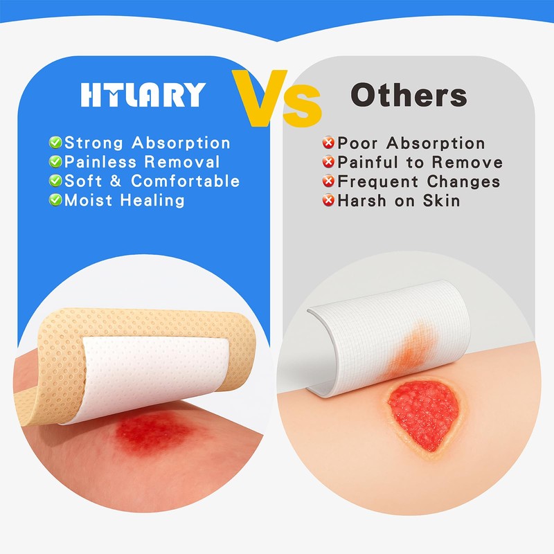- SUPERIOR HEALING & REDUCED IRRITATION: Htlary premium wound care dressing absorbs up to 15x its weight in fluid, creating an ideal moist environment to significantly accelerate healing. Its breathable design shields wounds from contaminants while supporting natural tissue repair, minimizing irritation. Perfect for pressure points.