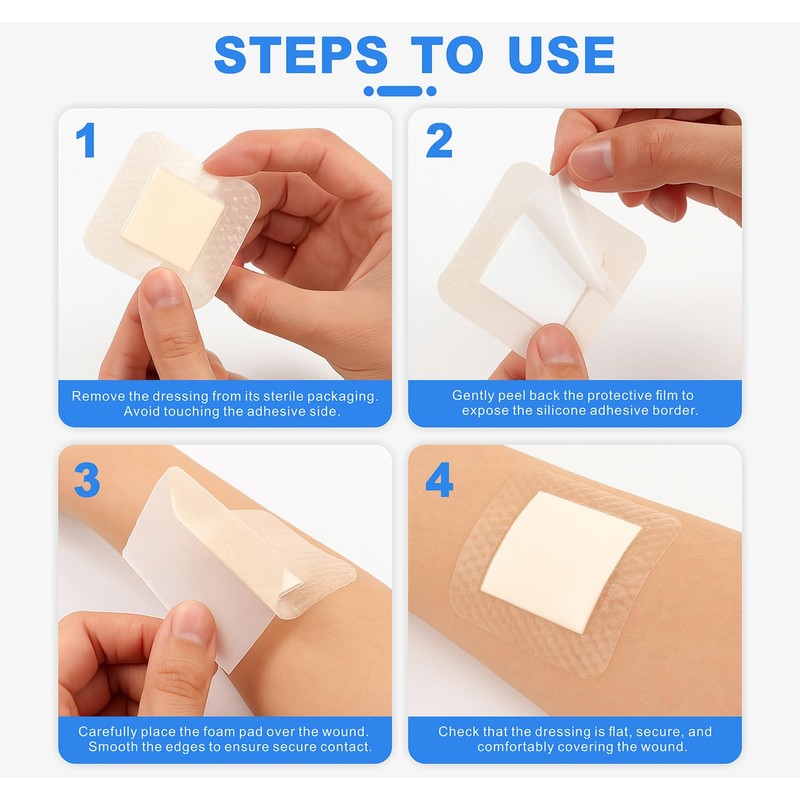 - PAIN-FREE REMOVAL & GENTLE ADHESION: Featuring a medical-grade, hypoallergenic silicone foam dressing with border, it adheres securely to dry skin without sticking to the wound bed. This innovative design ensures painless, trauma-free dressing changes, ideal for fragile or sensitive skin. A truly gentle wound dressing.