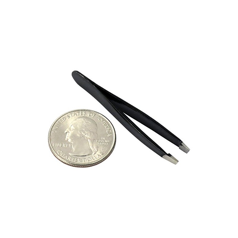 HTS 172M5 2" Black Mini Slanted Travel Eyebrow Tweezers