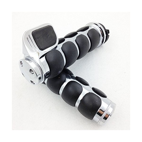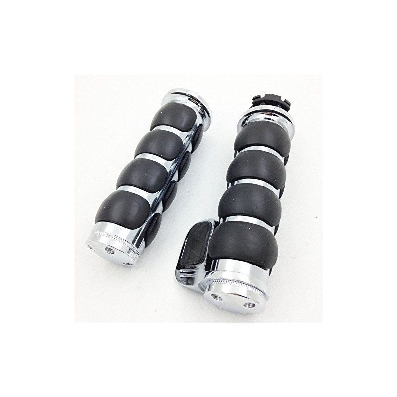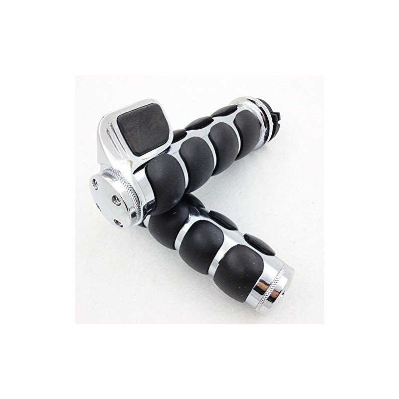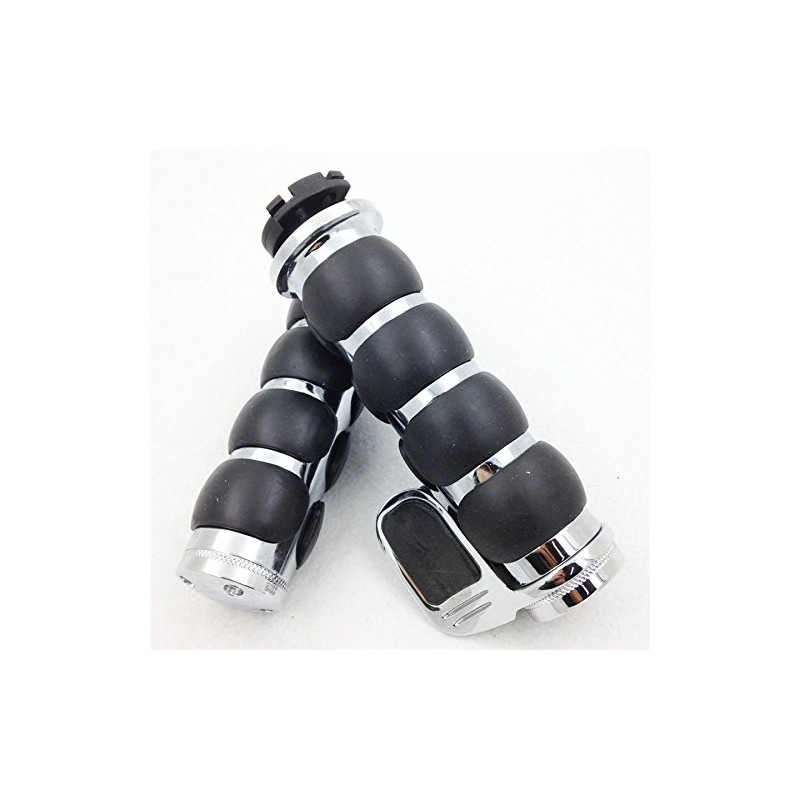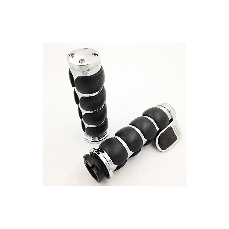 HTT Chrome Rubber Hand Grips 1" Pair For HD FXDWG Dyna Wide Glide/Suzuki Volusia 800 M50 Boulevard