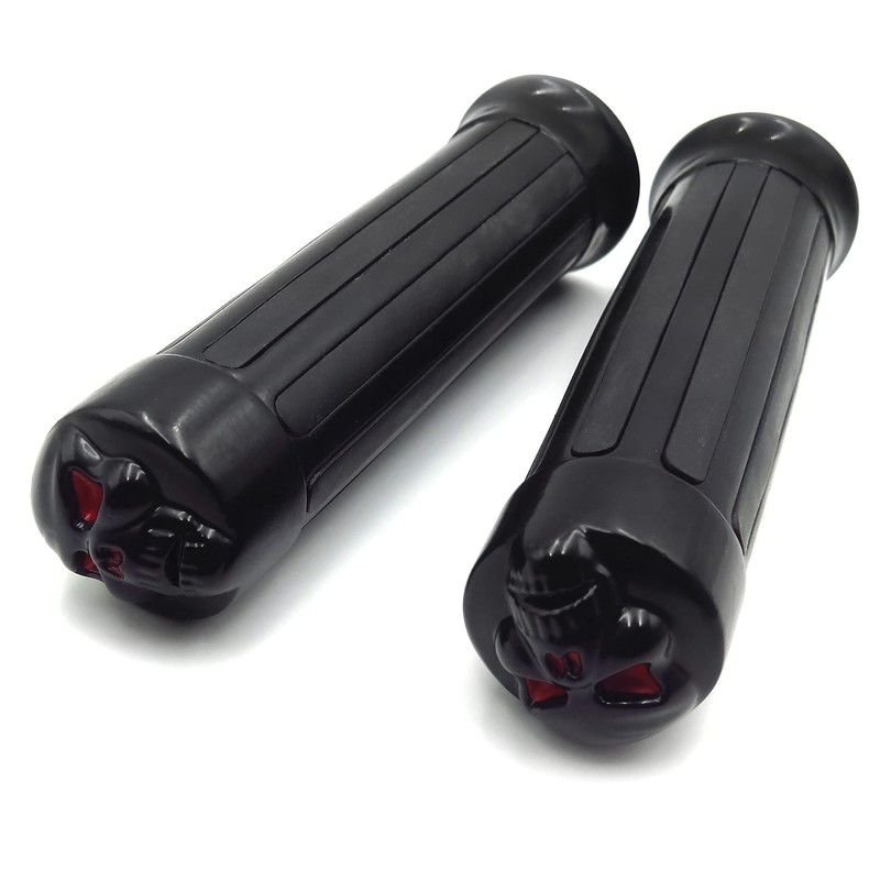 HTTMT MT080-25-BK Black Skull style Hand Grips 1 inch Handlebar Compatible with Harley XL 883 Hugger Sportster Cruiser