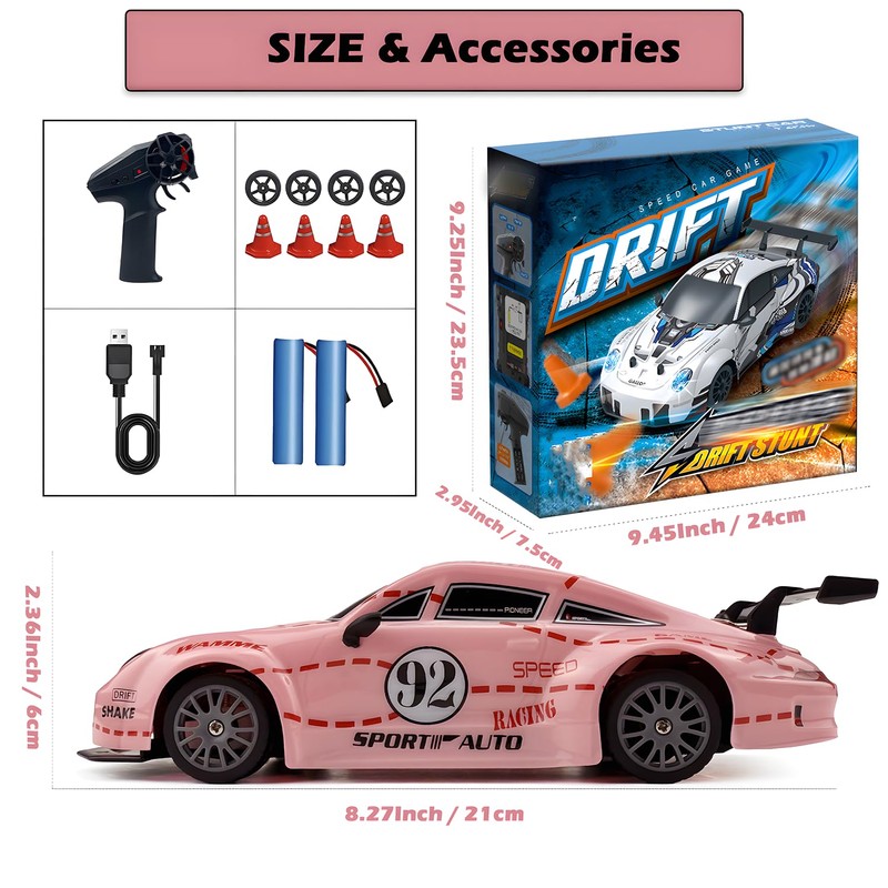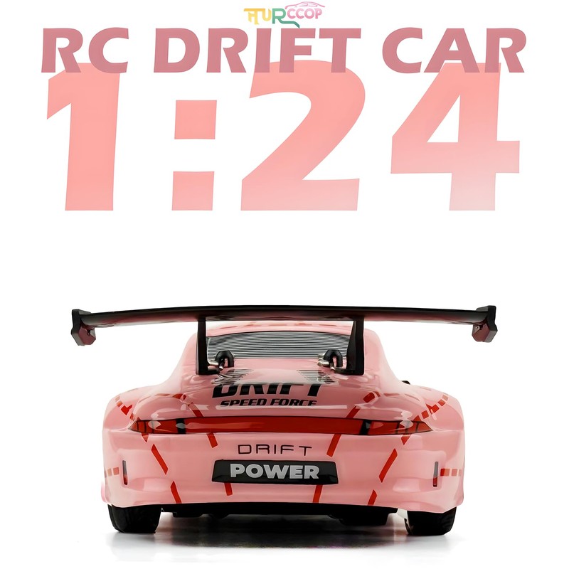 HTURCCOP RC Drift Car 2.4GHz 1:24 Scale 4WD High Speed Remote Control Cars Vehicle with LED Lights Two Batteries and Drifting Tires Racing Sport Toy Cars for Adults Boys Girls Kids Pink