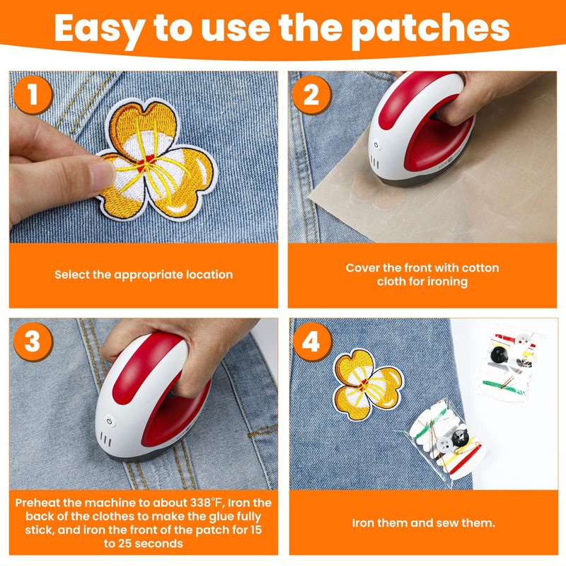 - Easy to Apply: The hot melt glue on the patch's back melts with heat. Place cotton fabric over the Iron On Patches to secure it before ironing. Keep the cloth dry and control the iron's preheat temperature. For permanent fixation, sew the patch in place.