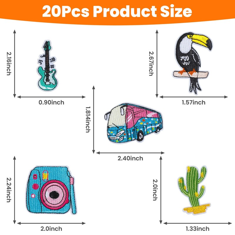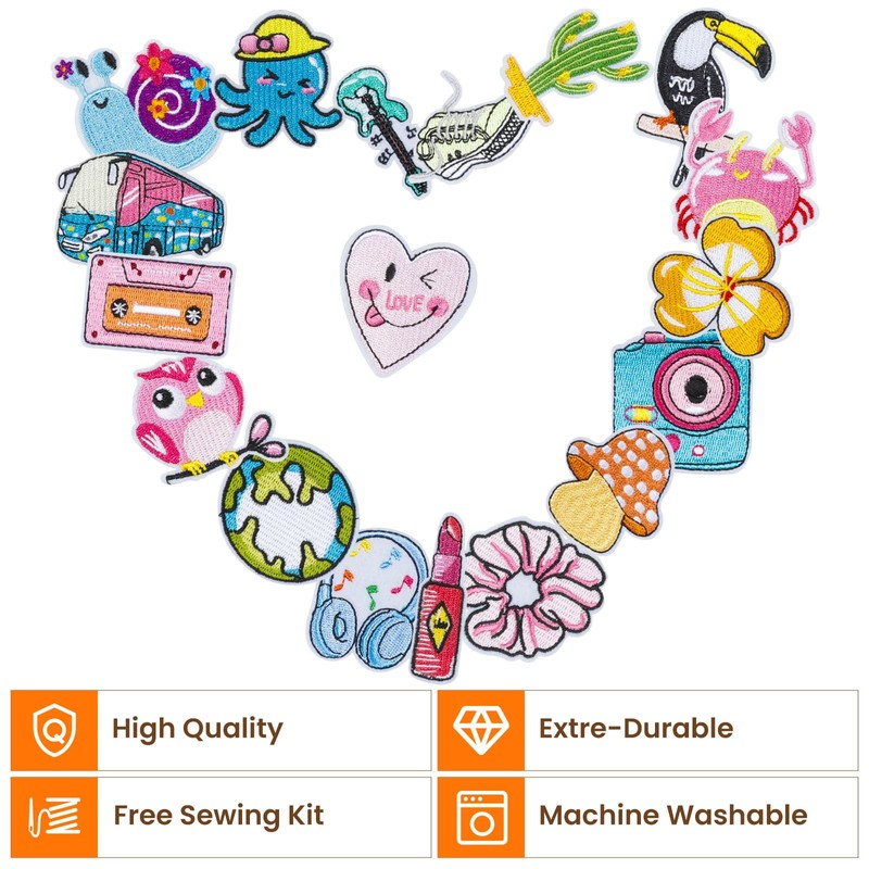 HTVRONT Embroidered Iron On Patches for Clothes & Accessories: 20pcs Random Assorted Set Including Kawaii Designs Iron On Patches & Embroidery Accessories