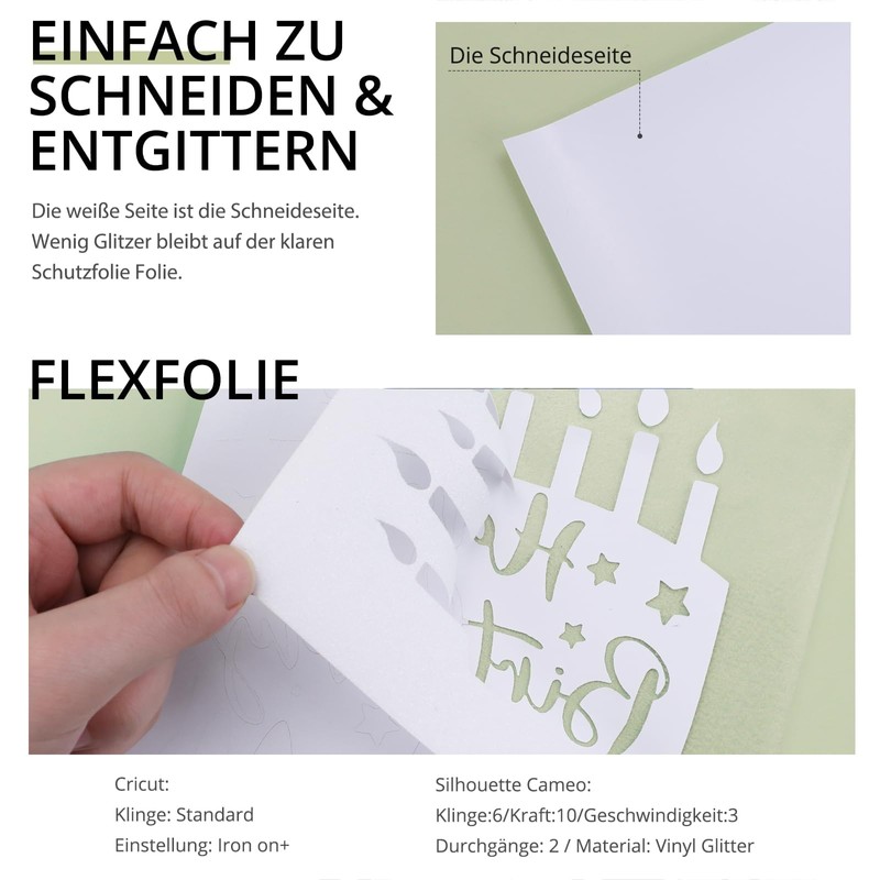 - Easy to cut and transfer: plotter film textile is characterised by excellent quality and cutting application properties. Easy to cut materials are designed for tailor-made clothing. With a transparent back, small fonts and beautiful patterns can be easily removed. Use a flex film on the fabric quickly and easily with a hot iron or a hot press.