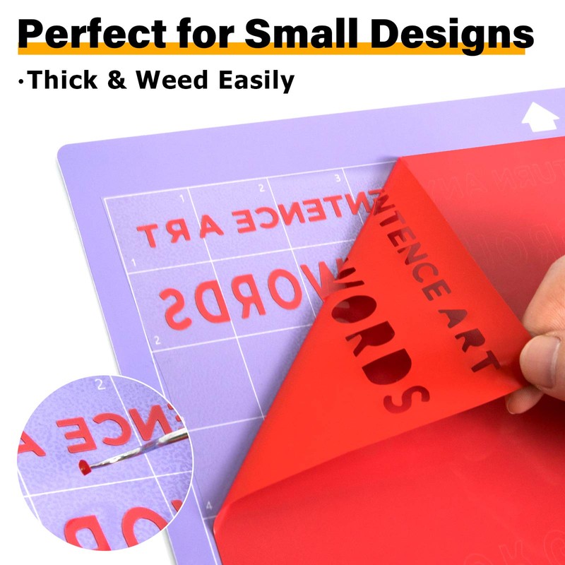 - Durability The HTV vinyl is made of high quality environmentally friendly materials with good elasticity and strong tensile properties. It has clean edges and will not fade, crack or fall off.