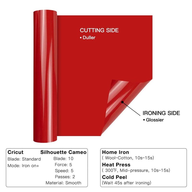 - Easy to use: The red heat transfer vinyl roll is easy to cut and compatible with machines such as Cricut Expression, Explore Air 1 and 2 and Silhouette Cameo. It is easy to weed, whether it is a small pattern or a small detail. Easy to iron, pressure and temperature sensitive, the htv viny can easily transfer to any t-shirt.