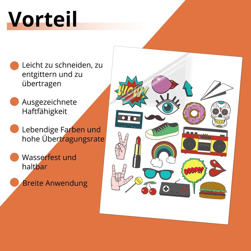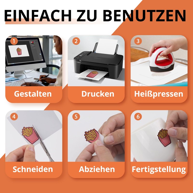 - [Easy to use] - Our sublimation sticker paper is easy to use. Simply transfer the design to the sticker by heat and let it cool to get a waterproof surface. The high quality adhesive on the back ensures that the sublimation sticker sticks firmly to any surface.