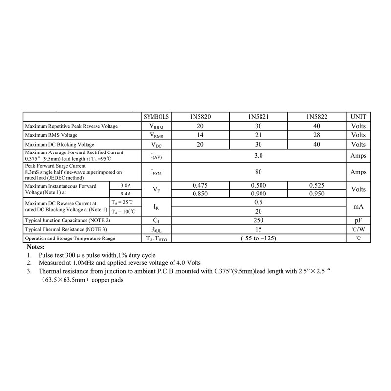 HUABAN 10PCS 1N5820 Schottky Barrier Rectifier Diodes 3A 20V DO-201AD (DO-27) Axial 5820 3 Amp 20 Volt