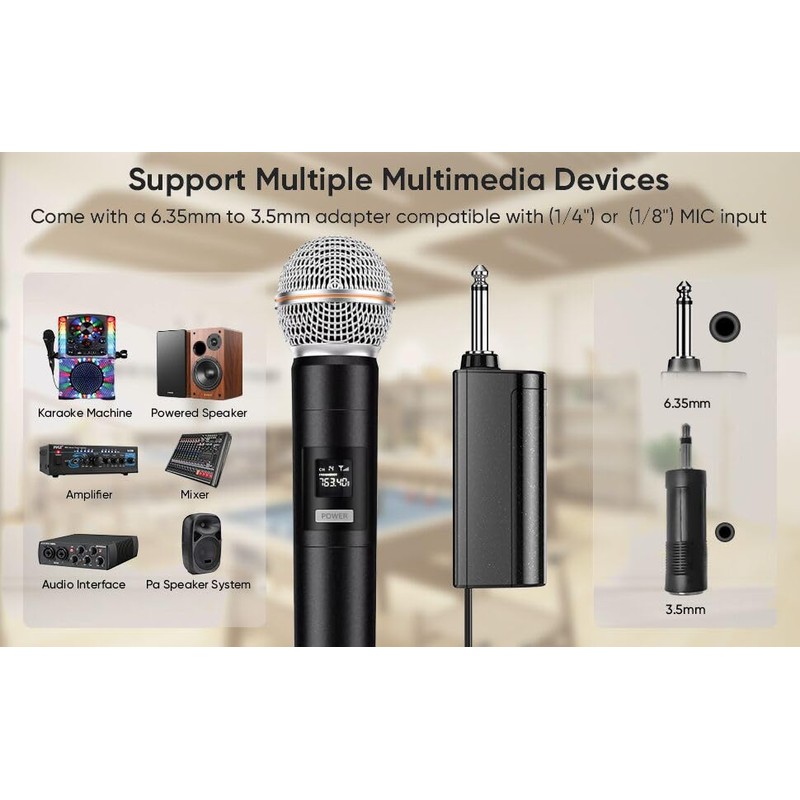- 【Easy setup】 Easy to connect and play, easy to do without pairing. strong signal stability, the wireless microphone is compatible with karaoke machines, electric speakers, amplifiers, mixers and audio interfaces. if microphone and receiver cannot be connected, please refer to the product description or user manual for pairing/reset methods.