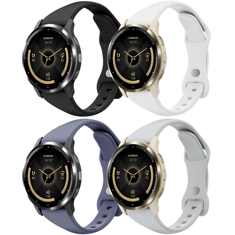 Huadea 18mm Slim Silicone Watch Bands Compatible with Garmin Venu 3s/Venu 2s/Vivoactive 4s/Vivomove 3s/Forerunner 255s/Forerunner 265s, Quick Release Thin Soft Sport Strap for Women Men (4 Pack)