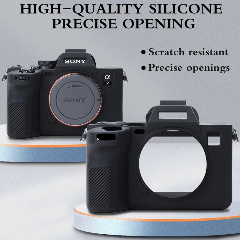 - PRECISE DESIGN: for Sony Alpha 7M4 Camera silicone case with the precise cutout, the bottom opening design can change the battery or SD card directly, the screen can be flipped freely. And the case comes with a cute lens cover to protect the camera lens effectives
