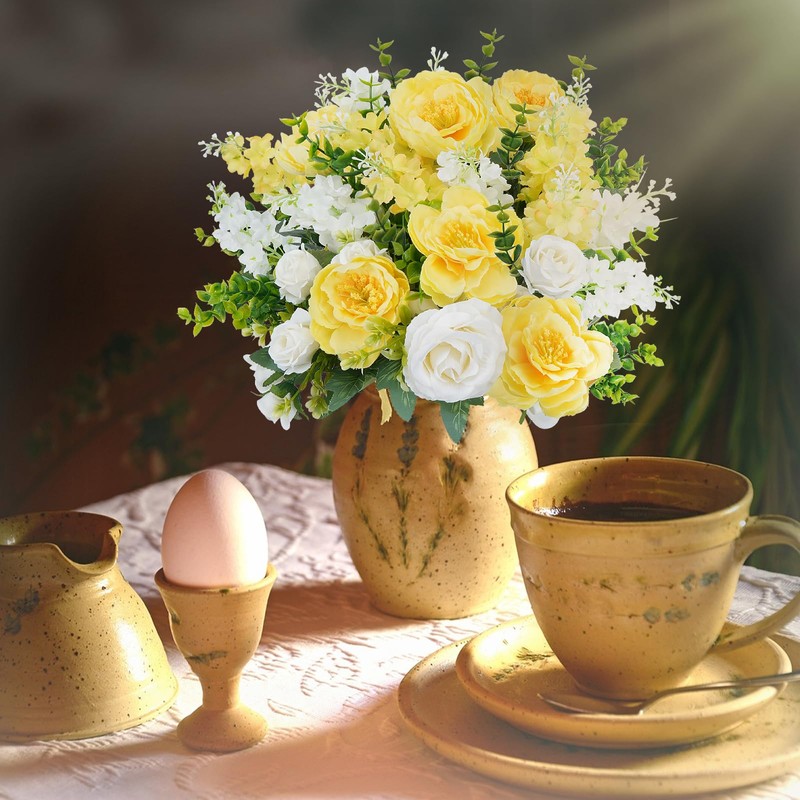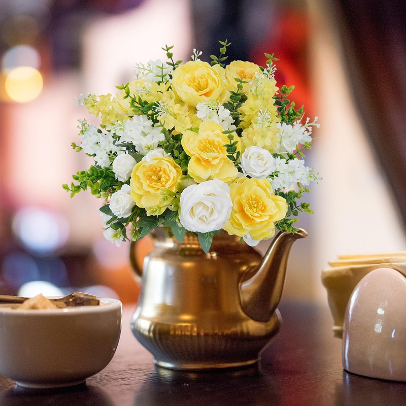 - Easy Care: High quality silk flowers and leaves, Plastic stems which are can be trimmed and bent freely as your will. No pollen allergy, no water, all year-round beauty. ideal spring fake flowers decorations are suit for birthday, housewarming, families, friends, relatives, neighbors, colleagues.