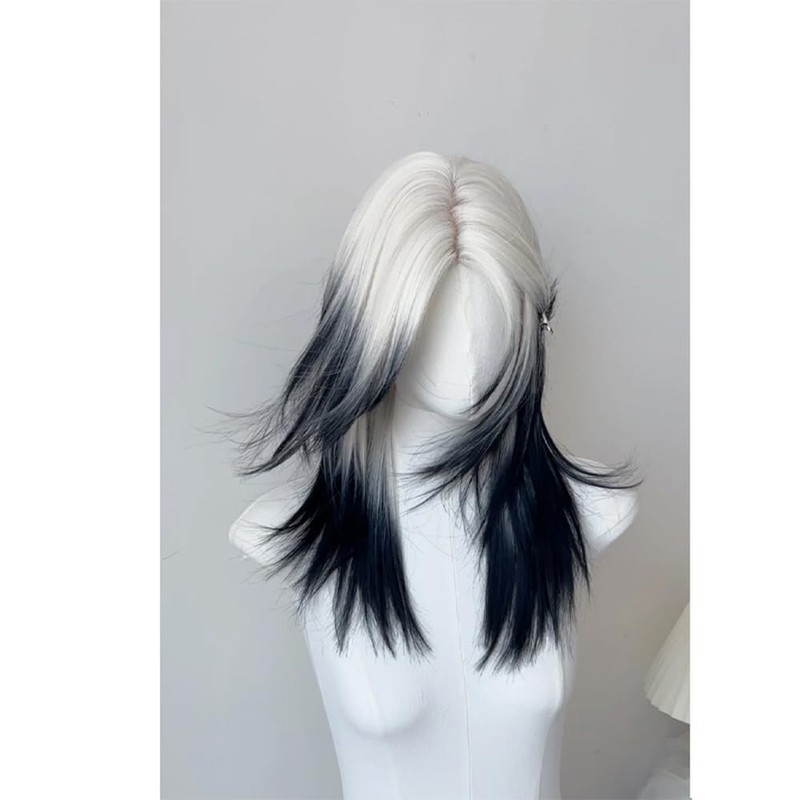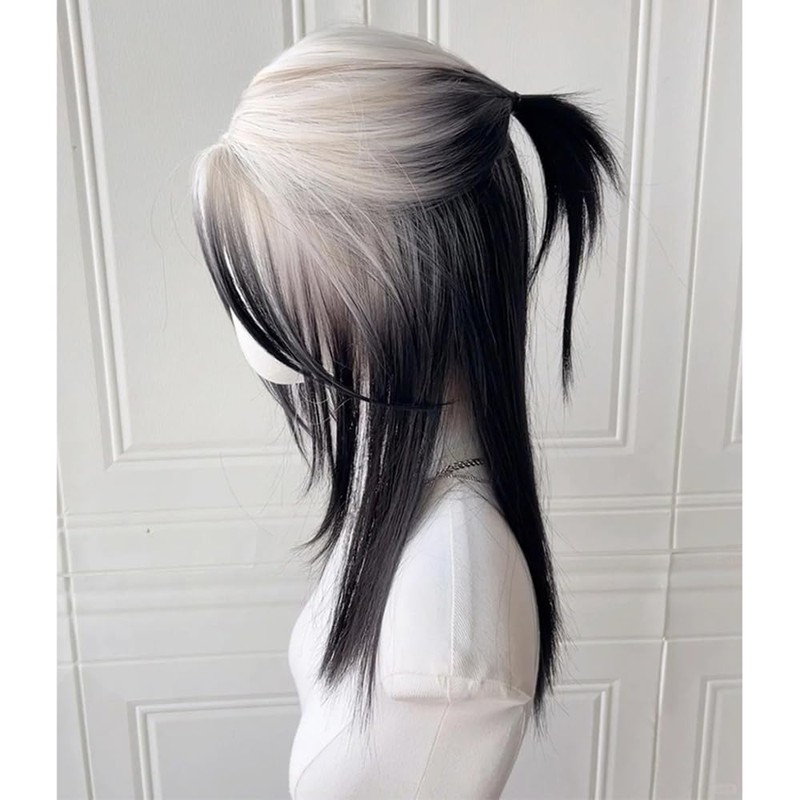 huafan luxkazya Black White Gradient Mullet Wigs for Men Women Long Layered Ombre White Black Wig Natural Looking Heat Resistant Synthetic Wig for Daily Party Use