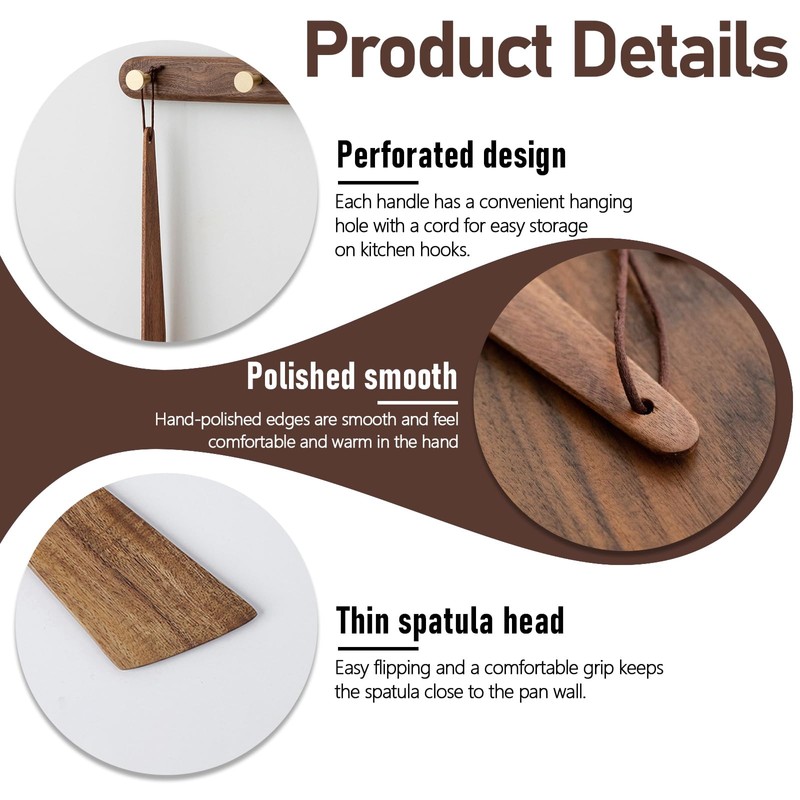 - 【Multiple-Purpose】With wooden flipping spatula thin and sharp front edge, it is versatile for delicate tasks like flipping pancakes or omelets, serving salads, scraping cast iron, crushing garlic, and more