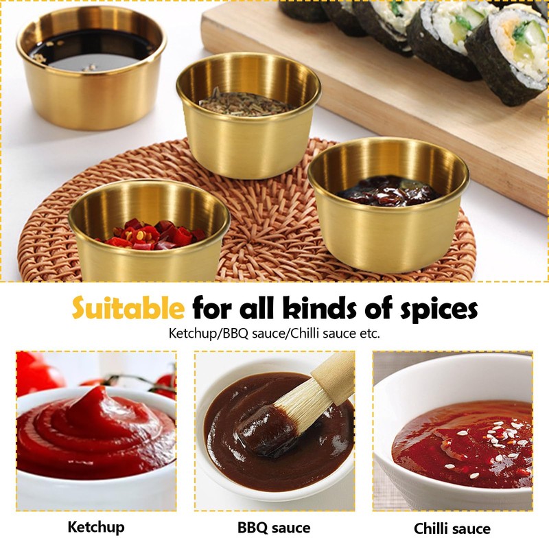 - 【Durable & Reusable】 Those dipping sauce cups are made of high-quality stainless steel, which is durable and not easy to rust or break. They are reusable and wear-resistant, can serve you for a long time.
