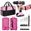HUAKAYO Pink Cordless Drill Set 142 Pcs, 21V Pink Power Drill Tool Set Kit with Storage Bag, Electric Drill Set for Women, Precision Screwdriver set, Magnetic Tool Belt, for Home DIY Projects