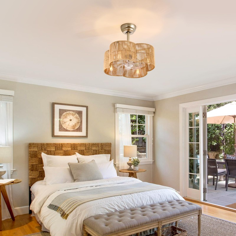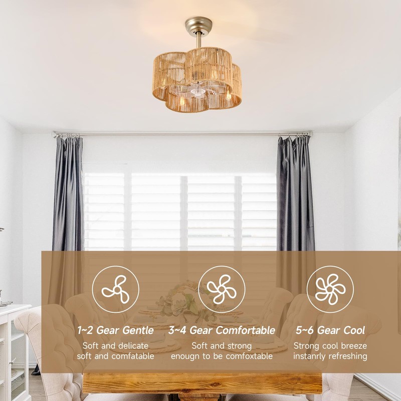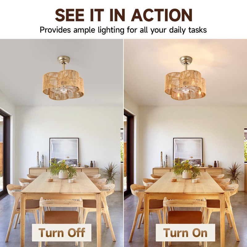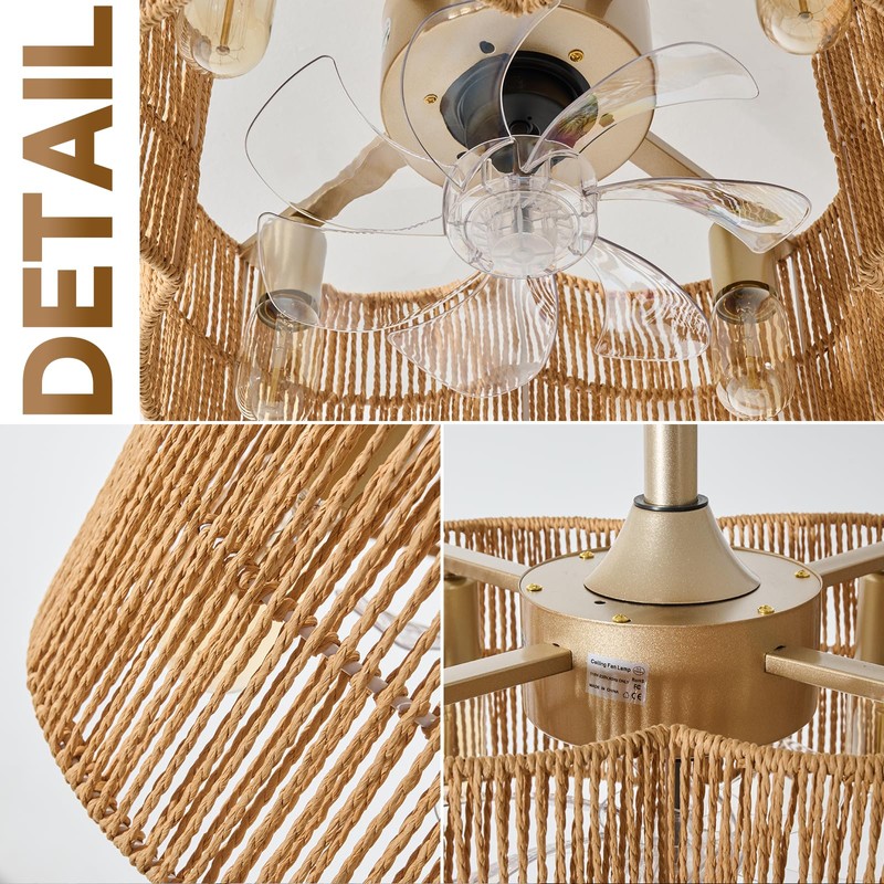 - 【Ceiling Fan with Light and Remote】It is convenient that paper rope rattan ceiling Fan and Light can be turned on or off individually.There are 6 fan speed, warm light and 1/2/4 hour timer.Reversible wind direction.Energy-Saving & Eye-Protecting LED Light Source.