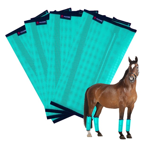HUAME Horse Fly Boots, Breathable Mesh Protection Set of 4, Comfortable Horse Leggings, Breathable Mesh Design, Equine Supplies for Reduce Stomping, Hoof Damage & Leg Fatigue (Green, Large)