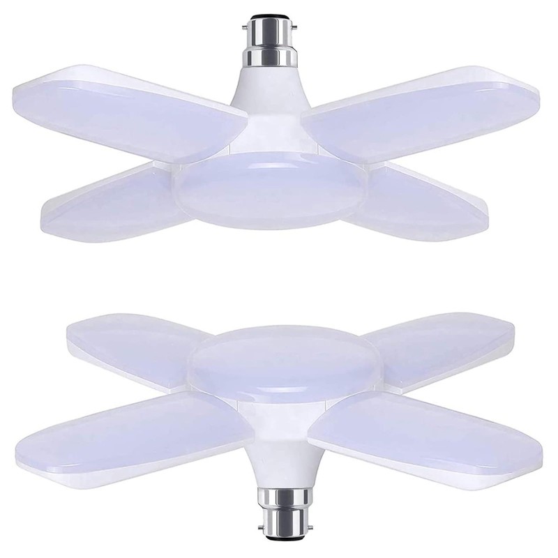 HUAMu B22 Bayonet LED Garage Light 60W, 6500K Daylight White 6000Lm Deformable Workshop Lamp with 4 Adjustable Panels, LED Ceiling Lighting, for Garages, Basement, Warehouse, Attic, Gym (Pack of 2)