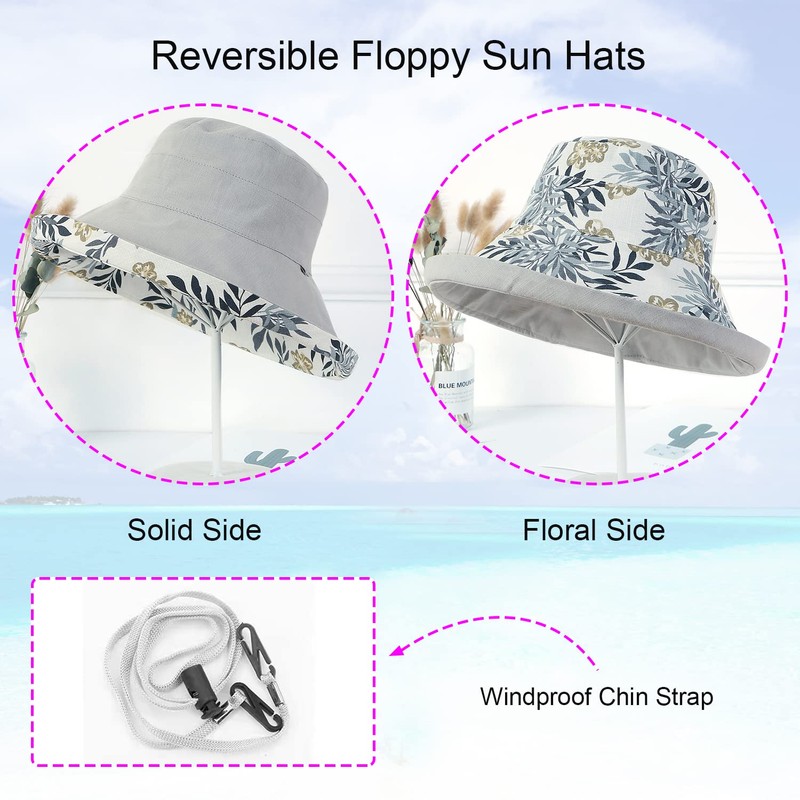 HUAMULAN Women Floral Reversible Wide Brim Sun Hats Summer UV Protection Hiking Fishing Hat Wired Edge Beach Garden Lawn Work Cap Chin Strap