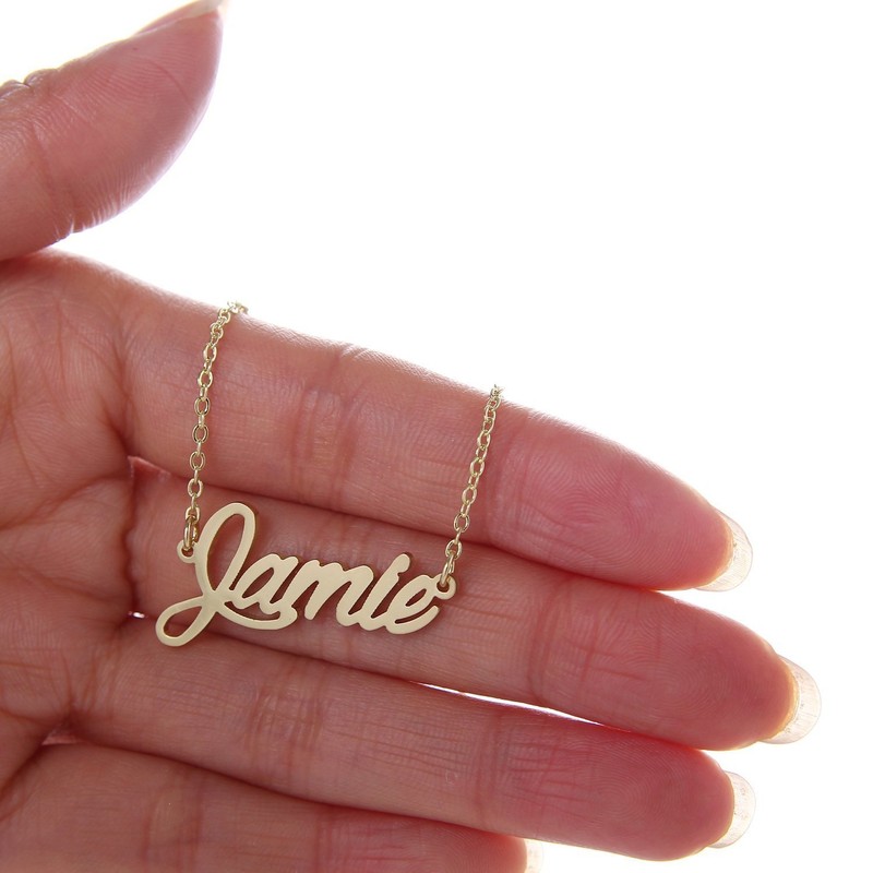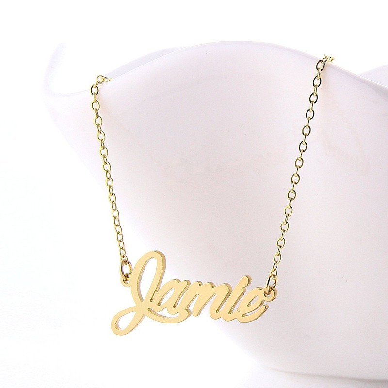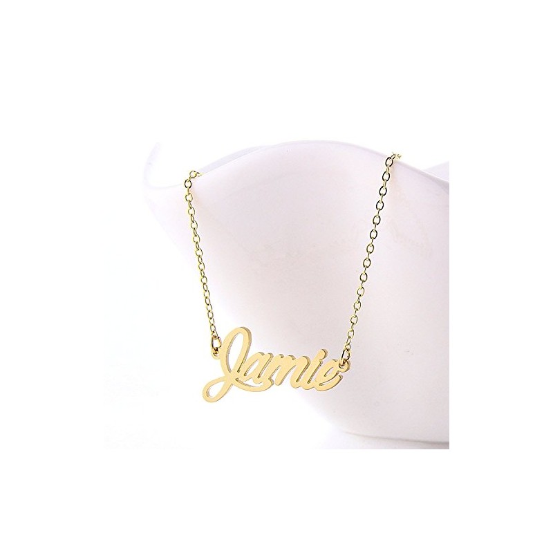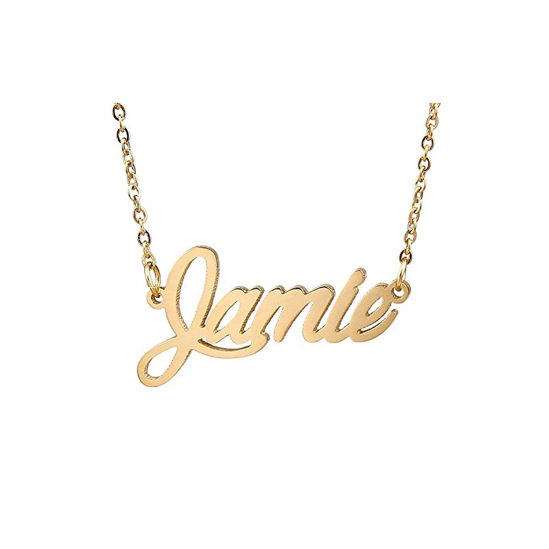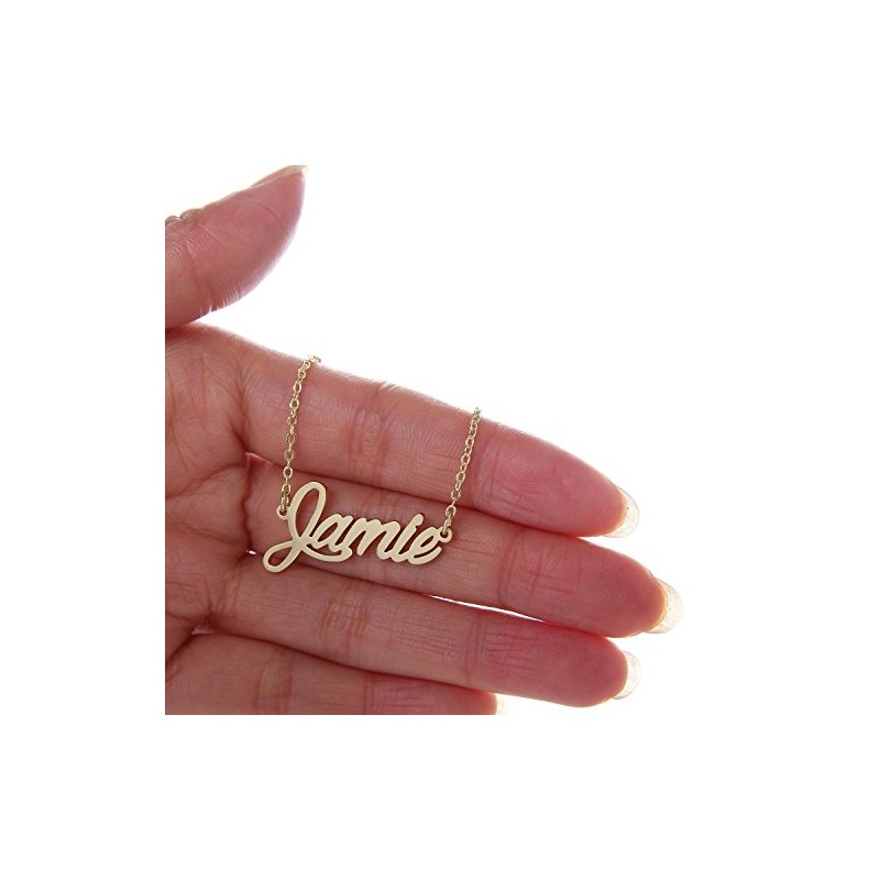 HUAN XUN Gold Color Plated Cursive Name Plate Charm Necklace, Jamie