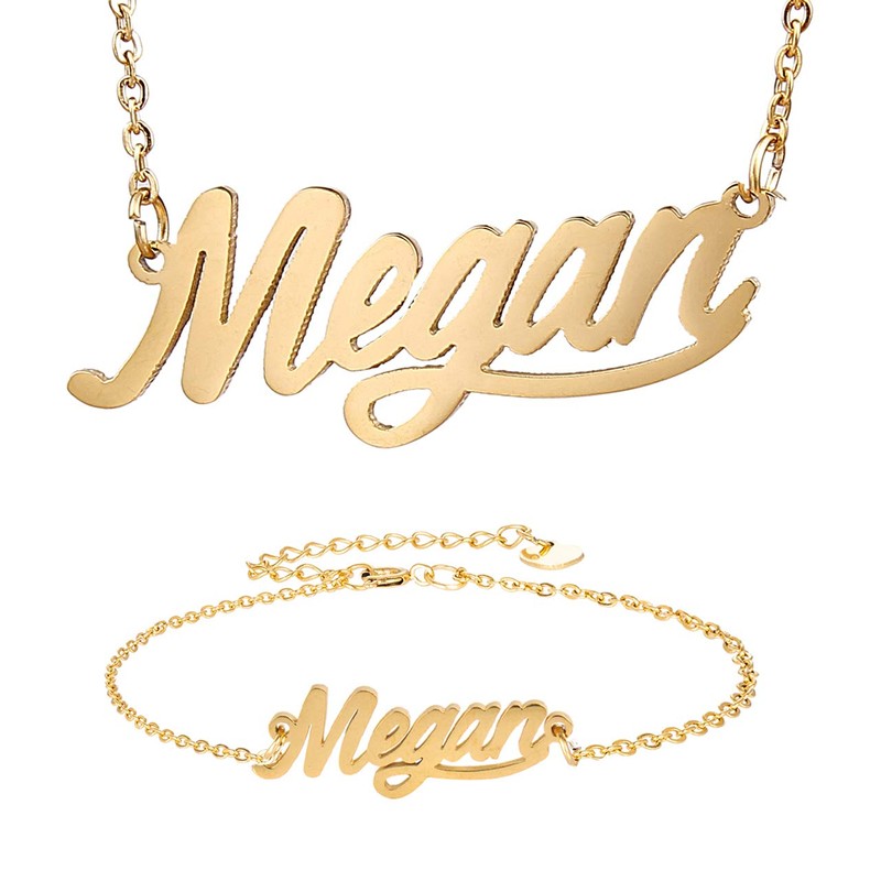 - Megan Name Necklace & Bracelet set, 18k Gold Plated