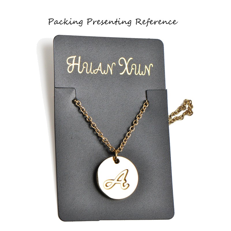 HUAN XUN Stainless Steel Stamped Script Disc Initial Pendant Necklace C