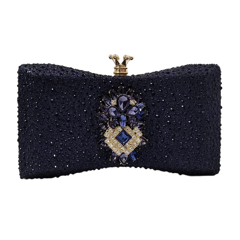 HUANG ZHUANG Bolso de mano de vidrio con lazo para mujer, con diamantes de imitación, para fiesta, boda, lindo bolso, Azul oscuro