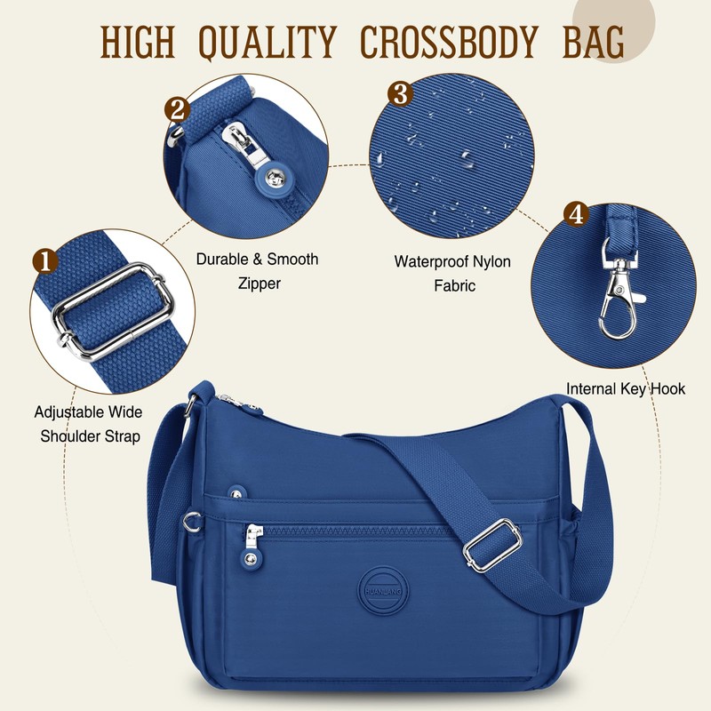 HUANLANG Crossbody Bag for Women Waterproof Lightweight Purses Nylon Crossbody Handbags Casual Multipocket Shoulder Bag