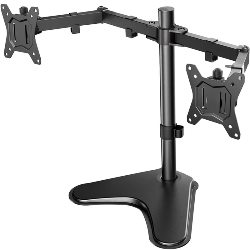 HUANUO Dual Monitor Stand, 32 inch Free Standing Monitor Desk Mount, Fully Adjustable Dual Monitor Arm with Vesa Mount 100x100 Max, Computer Monitor Desk Stands for 2 Monitors, Black, HNCM1