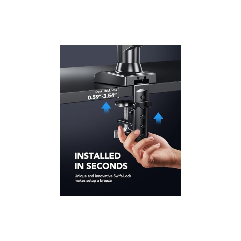 - Installed In 3 Minutes: The 1-piece design monitor arm simplifies the installation, so all necessary hardware is included; The setup can be completed in 3 minutes. Step 1: Affix the bracket to your table; Step 2: Attach your monitor to the VESA plate; Step 3: Adjust tension according to your monitor weight.
