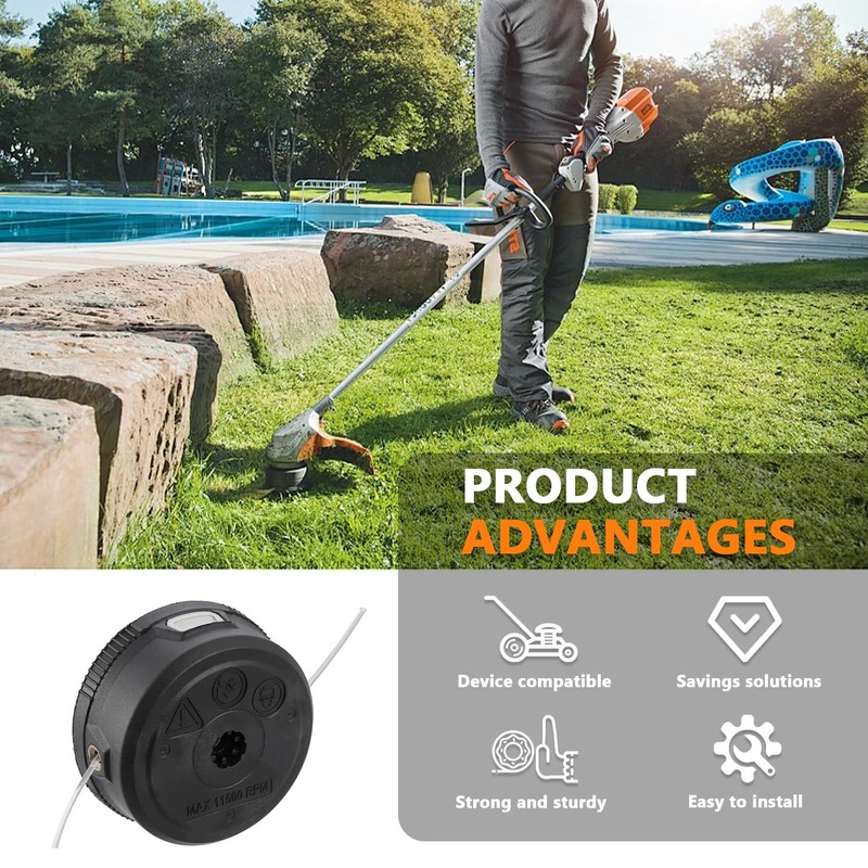 Equipment Type:Brushcutter, Grass Trimmer, String Trimmer, Weed Eater.Replacement Spool with nylon line comes pre-wound with .080" (2mm) diameter nylon line. Made from high-quality ABS plastic and polyamide nylon cord, ensuring durability and resistance to breakage.