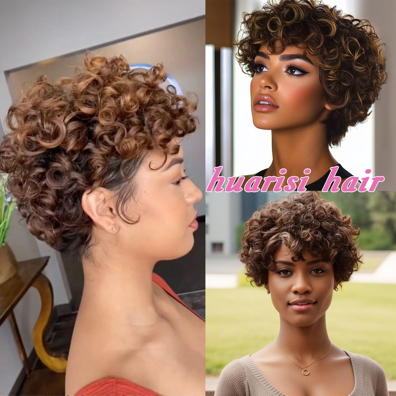 - Stylish & Versatile: Pixie Cut Wigs Curly Human Hair with Brown Mixed Auburn Colour, Look Stylish, Wear Comfortable, Can be Dyed, Curled, Permed, Straightened or Trimmed, Ideal for Those Seeking Chic Elegent, Bold, Edgy and Trendy Wearable Style